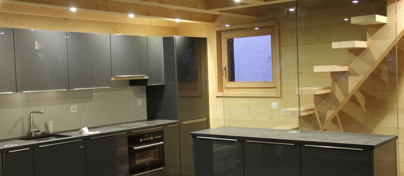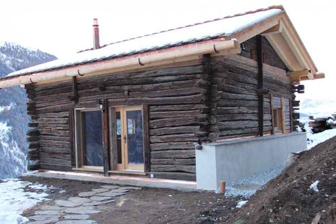 La grange d’origine était dans un tel état de délabrement qu’il n’a pas été possible de réutiliser la charpente. L'auteur du projet a acheté une grange dans un village voisin, l’a démontée et remontée telle que vous pouvez la voir. Sa rénovation a duré 5 mois, de juin à mi-décembre 2013.