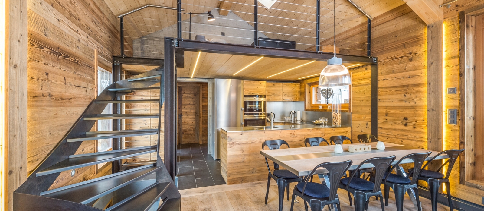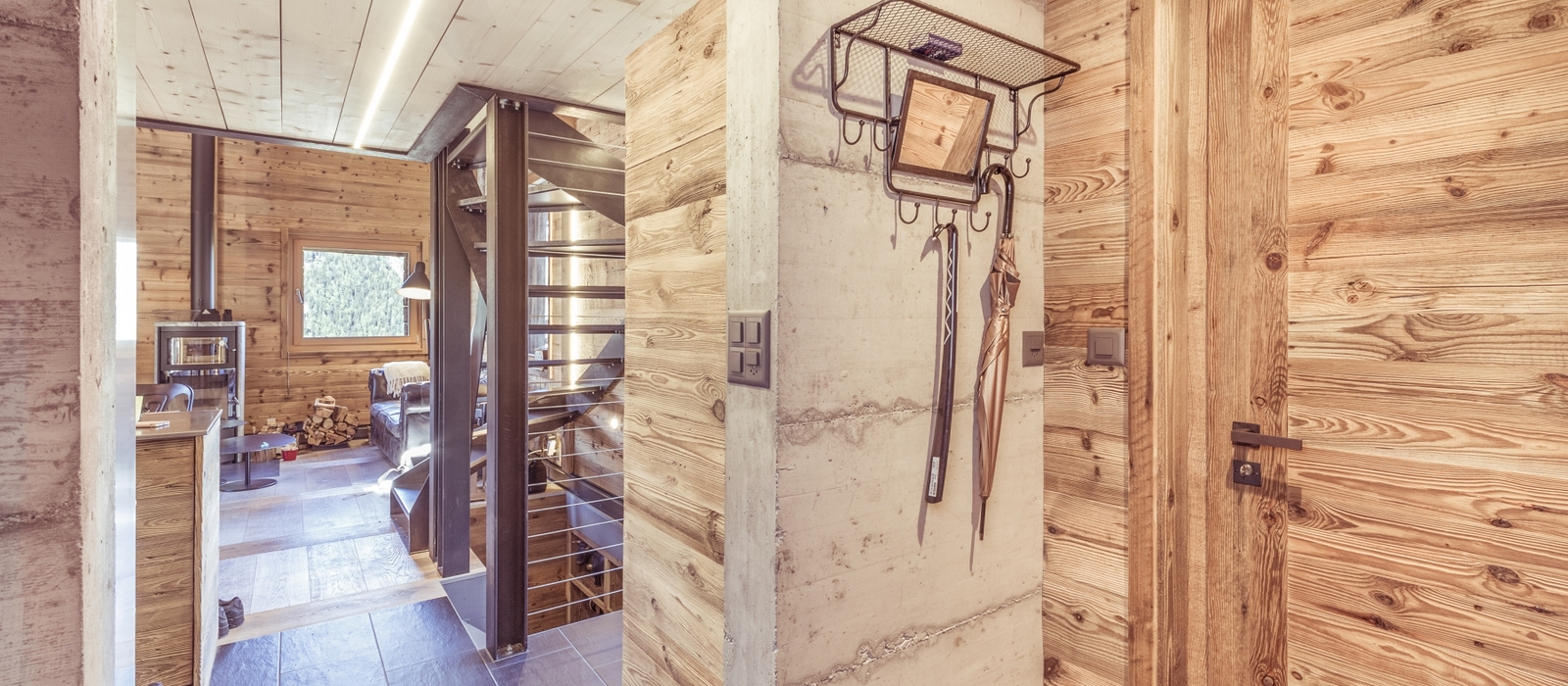 A l’intérieur, le béton fait bon ménage avec le vieux bois et le métal brut. Elle bénéficie de 2 terrasses, l’une au Sud pour le petit-déjeûner et le dîner au soleil et l’autre au Nord pour le repas du soir, au coucher du soleil.